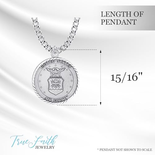 HOT ! True Faith Jewelry Sterling Silver United States Air Force Service Medal with St Michael Patron Saint Archangel Pendant Necklace, 3/4 Inch