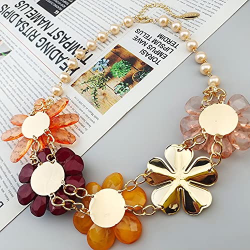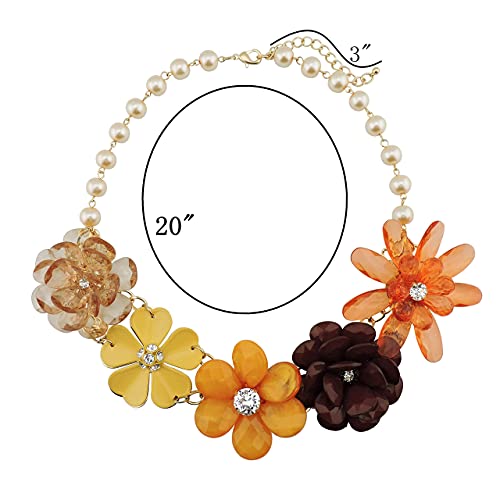 More information about Bocar 5 Flower Braided Crystal Statement Chunky Necklace Bib Collar Flower Pearl Jewelry for Women