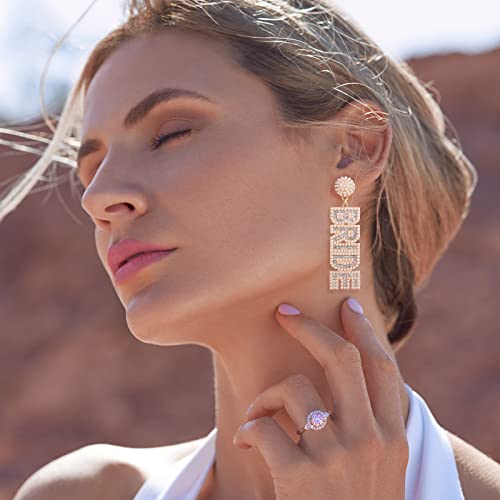 • 💎【STYLISH BRIDE EARINGS】The delicate big and sparkly rhinestone BRIDE earrings are decorated with dazzling crystals and "BRIDE " lettering, as timeless as your love&happy. Elegant bridal earrings, once put on, you will be the center of attention in bachelorette and wedding party.