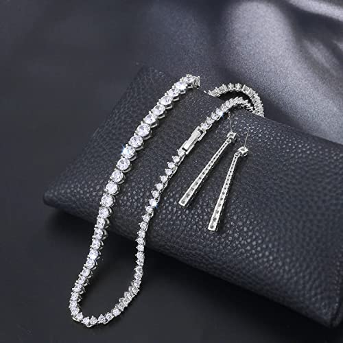 HOT ! Women Cubic Zirconia Round Cut CZ Bridal Necklace and Dangle Earrings Set for Bride Wedding