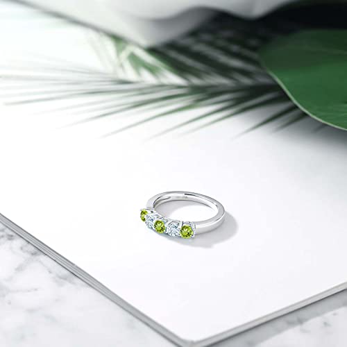 Gem Stone King 925 Sterling Silver Green Peridot and Sky Blue Aquamarine Wedding Band Ring For Women (0.96 Cttw, Round 3.5MM, Gemstone August Birthstone, Available In Size 5, 6, 7, 8, 9) 1