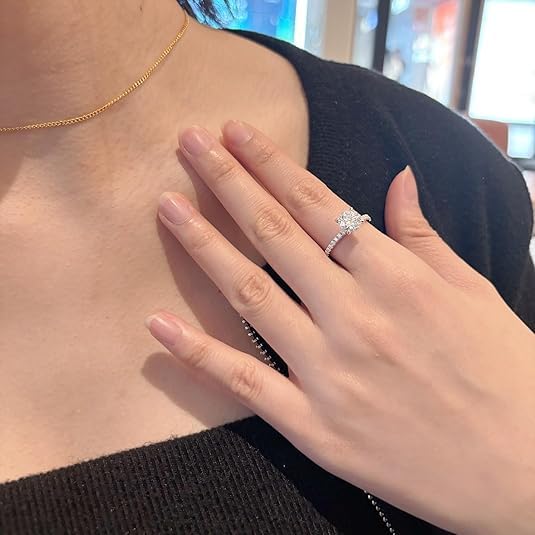 • REAL PREMIUM MOISSANITE - All stones of this sterling silver ring are 100% REAL moissanite which is as bright and beautiful as diamond. 2.0CT D color VVS1 clarity make this ring more sparkling, won't tarnish or discolor. It is more cost-effective than diamond.