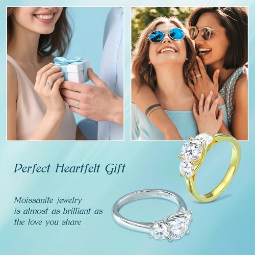 • TIMELESS 3 STONE DESIGN - The classic 3-stone design symbolizes past, present, and future, making this moissanite engagement ring both meaningful and elegant. It complements various styles, from casual to formal, adding a touch of sophistication to any look.​