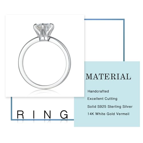 HOT ! MOOSEA 2ct Moissanite Promise Ring - Round Cut Solitaire Moissanite Engagement Ring | 14K White Gold Vermeil Sterling Silver | Classic, White, Eye Clean, 1ct, 1 Stone