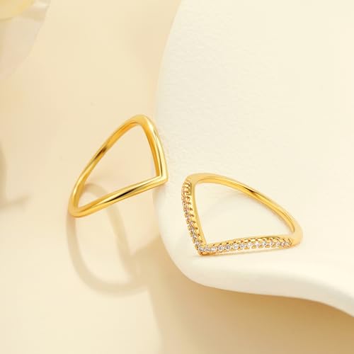 Stackable Gold Rings for Women Non Tarnish,Dainty 14k Gold Plated Stackable Rings Trendy Cubic Zirconia Thumb Ring Set Jewelry for Women 2