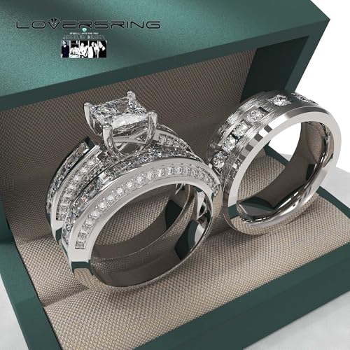 • WOMEN'S RING: This 925 Sterling Silver square cut Moissanite 2 pieces wedding engagement ring set is perfect for couples. The ring is paved with AAA+ clear sparkling Moissanite, ensuring that no stone will fall out. Available in women's sizes 5,6, 7, 8,9and 10, with an adjustable size feature.