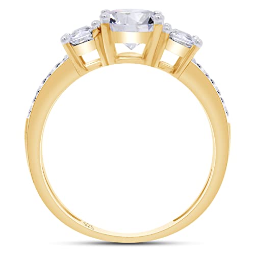• This Three Stone Design Engagement Ring Adds A Touch Of Nature-Inspired Beauty To Your Look In 14k Yellow Gold Over Sterling Silver Makes a Standout Addition to Your Collection With Center 8X6MM Center Oval Cut With Baguette And Princess Shape Sparkling White Cubic Zirconia