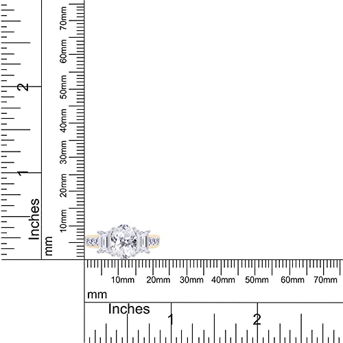 SAVEARTH DIAMONDS Three Stone Ring, Center 8X6MM Oval Cut With Baguette And Princess Cut Sparkling Cubic Zirconia Engagement Ring In 14k Gold Over Sterling Silver Jewelry For Women 2