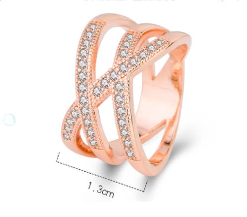 HOT ! Fashion Rose Gold Overlapping Rings For Women Intertwined Crossover Statement X Ring Cross Ring Cubic Zirconia Ring Engagement Promise Band Wedding Rings for Women Gifts