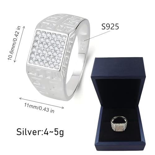 Sterling Silver Rings S925 Silver Men's Ring Men's Wedding Rings with 36 Sparkling Zircons – Square Shape & Ancient Greek Patterns Style 4