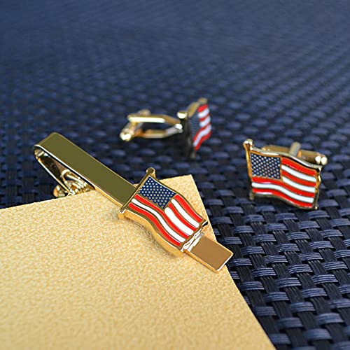 American Tie Clip for Men, Gold American Flag Necktie Bar Clips, Formal Tie Pins Stickpin Gift for USA Governor, Officer, Lawyer, Soldier, Patriot, Cops, Policemen (Waving Clip) 7