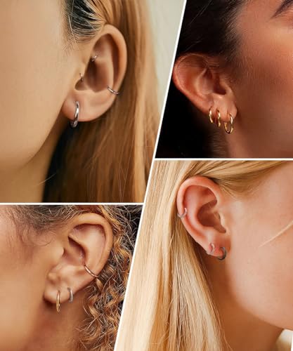 More information about REVOLIA 10 Pairs 20G Surgical Steel Huggie Hoop Earrings for Women Men Hypoallergenic Cartilage Helix Hoop Earrings Lobes Hinged Sleeper Earrings Hoops 6-14mm