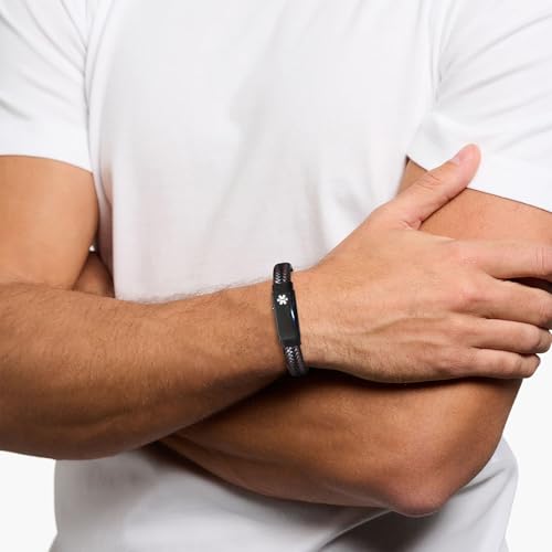 • Medical Bracelets for Men: This Medic alert bracelet fits for 7.2"-7.8" wrist size, it is constructed from high-quality stainless steel and braided leather, and the medical alert bracelet provides robustness and longevity, ideal for everyday wear and emergencies.