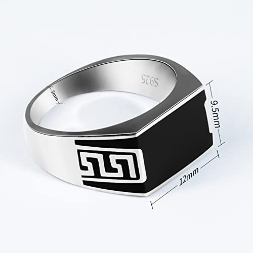 925 Sterling Silver Ring with Solid Rectangle Signet Black Enamel Ring, Turkish Classic Design Handmade Jewelry,Fashion Signet Ring Festival Anniversary Birthday Jewelry Gift for Men and Women 6