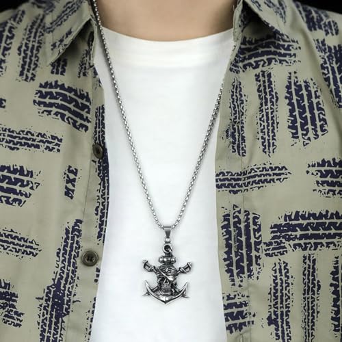 PINK TOWN Gothic Pirate Skull Pendant Necklace With Skull Head, Ship Anchor, Double Sword - Stainless Steel For Men & Women 7