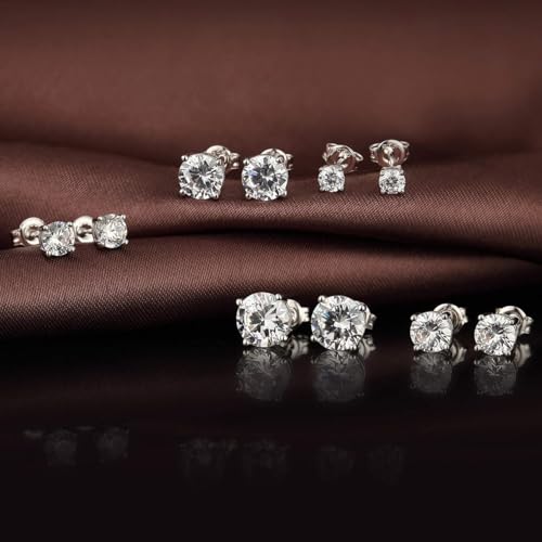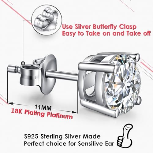 HOT ! Jiamiaoi 18K White Gold Plated Simulated Diamond Earrings for Men Women Hypoallergenic 925 Sterling Silver Cubic Zirconia CZ Stud Earrings4mm-8mm
