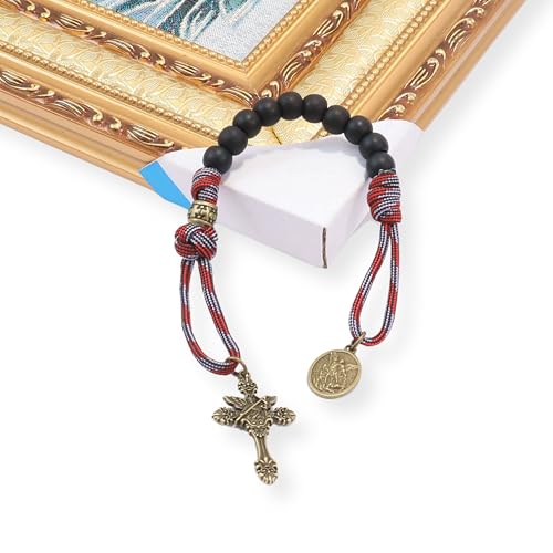 Nazareth Store Antique Bronze Strong One Decade Paracord Rosary Black Beads Pocket Car Rosary St Michael Medal & Archangel Cross 5