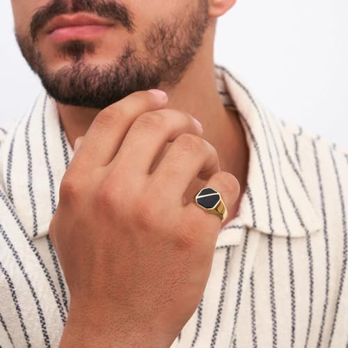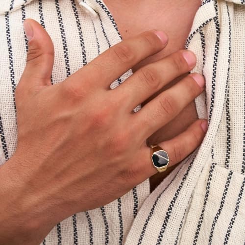 More information about 10k 14k 18k Solid Gold Personalized Signet Ring for Men with Black Onyx Stone Handmade Signet Ring Engraved Signet Ring Best Gift for Men Husband Boyfriend