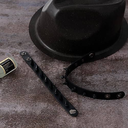 Manfnee Leather Cuff Bracelet Punk Bracelet Rock Braided Rivets Wristband for Men Women Adjustable 1