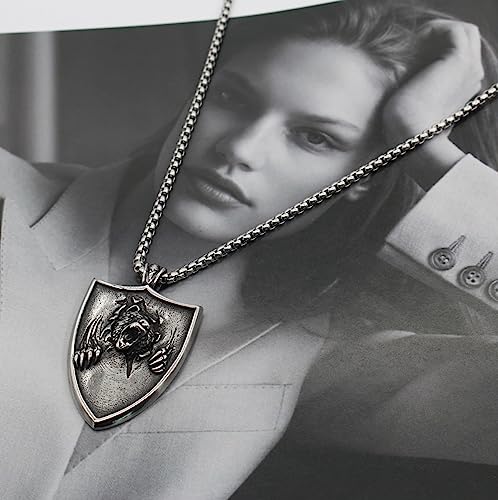 Norse Bear Claw Amulet Necklace for Men,Eagle Wolf Head Pendant Necklace with 22+2" Stainless Steel Chain 4
