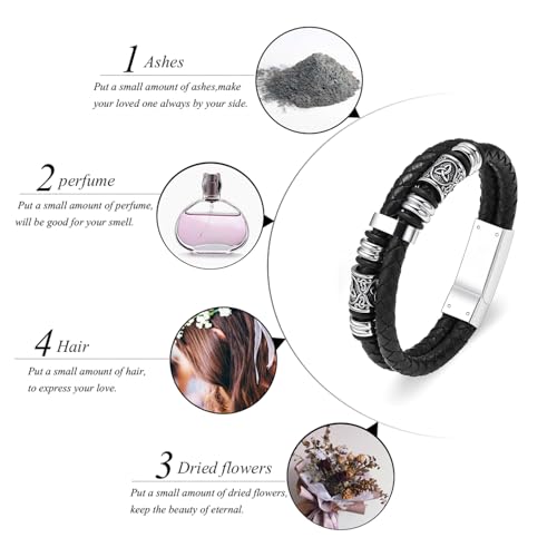 • ➤【High Quality Material】-- The Viking Thor's Hammer Cremation Bracelet for Ashes for Men is made of premium 316L stainless steel and leather, which does not fade, and is durable, ensuring comfortable wearing.
