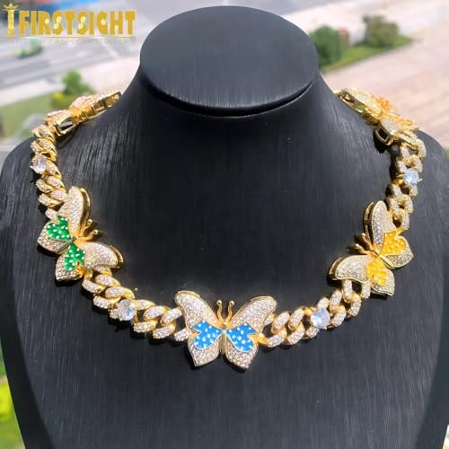 • Dazzling Butterfly Pendant – Fully iced out with high-quality rhinestones for maximum shine and bold presence.