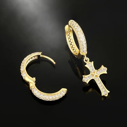 • Hypoallergenic: KRKC cross hoop earrings for men are made of 925 pure sterling with 5 times 14k gold plating. All of our earrings are hypoallergenic and therefore suitable for all skin types. Perfect for party, band, photo and video shoots, rappers.