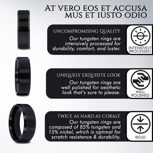 Thorsten Infinity | Tungsten Rings for Men | Tungsten | Comfort Fit | Black Wedding Ring Band with Beveled Edges - 4mm to 12mm 1