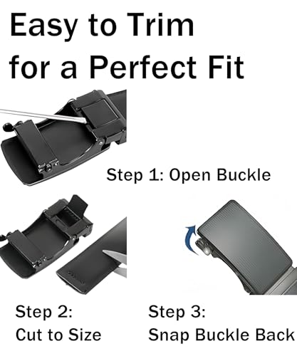 • EASY USE - Experience effortless style with this premium men's ratchet belt enthusiasts appreciate! Simply slide the black belt men or brown belt men strap into the buckle and pull through—the buckle auto-locks instantly. To release, gently press the side lever for a smooth unlock. Perfect for stretch belts for men fans and men's belts leather lovers seeking convenience and modern design.