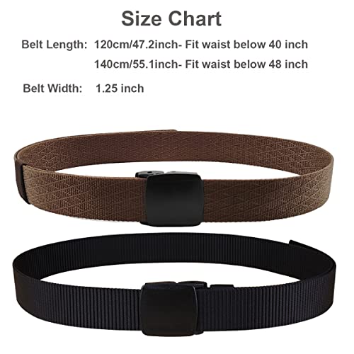 2 Pack Military Nylon Belt, 1.25" Wide No Metal Webbing Tactical Web Belt 1