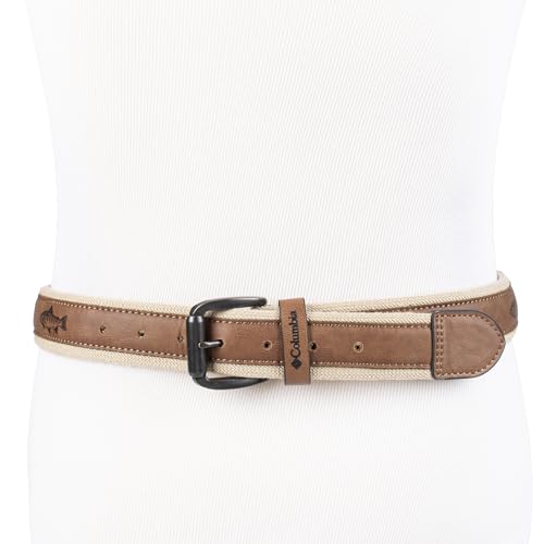 • UNIQUE DESIGN: Add some freshness to your wardrobe with this casual Columbia belt. The faux leather fish pring inlay adds a stylish accent and the cotton layer adds more comfort to your everyday wear, while the tonal stitching adds a sophisticated touch