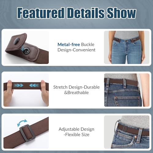 • ☘ Reinforced Hardware - We use solid snap, not easy to fall off and rust. Thickened metal bar to fix the length more tightly and adjust the length easily. This buckle free women belt is very convenient to take on and off.