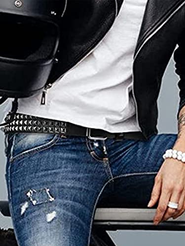 • PUNK STYLE CLASSIC BELT: Punk rock style belt with silver square stud look for cool people, black studded 80s belts for women and man.