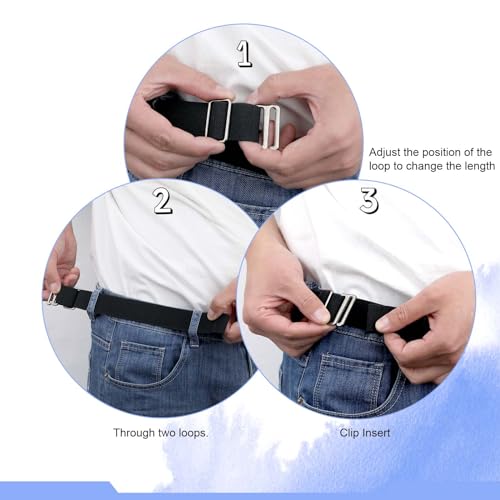 1 Pair/ 2PCS Elastic Belt, Newly Upgraded Side Belts No Buckle Belt Loops for Pants, 1.18 Inch Wide Belt Loops for Men, Women 5
