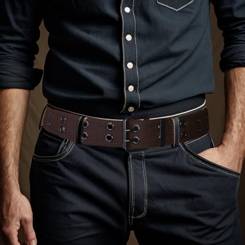 Double Grommets Belt for Men,Canvas Belt for Men and Women with Double Prong Thick Metal Buckle 1
