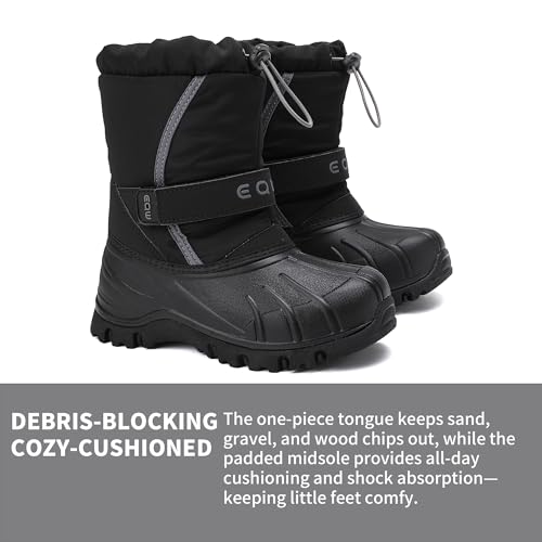 • FLEXIBLE & GRIPPING: Perfect for sledding & snowy play. A flexible EVA midsole offers energy return and shock absorption to ease fatigue, while a traction rubber sole gives steady grip—keeping feet comfy and steady all winter.