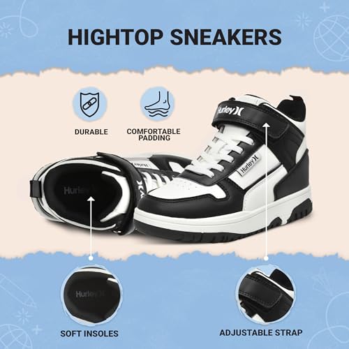 HOT ! Hurley Kids' Carson High-Top Sneakers with Adjustable Strap, High Top Shoes for Kids, Sturdy Padded High Cut Sneakers for Boys and Girls, Fashionable Basketball Shoes for Kids