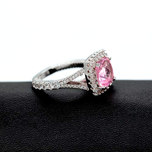 More information about Uloveido Platinum Plated Sparky Cushion Cut 3 Carats Pink Cubic Zirconia Stone Solitaire Square Wedding Ring Split Shank Y586
