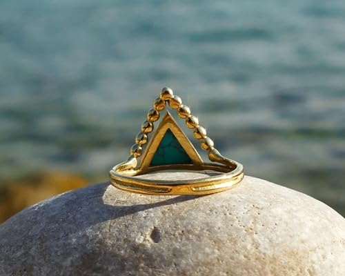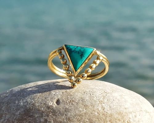 Copper Turquoise Women Wedding Ring, Natural Turquoise Ring For Her, Boho 6