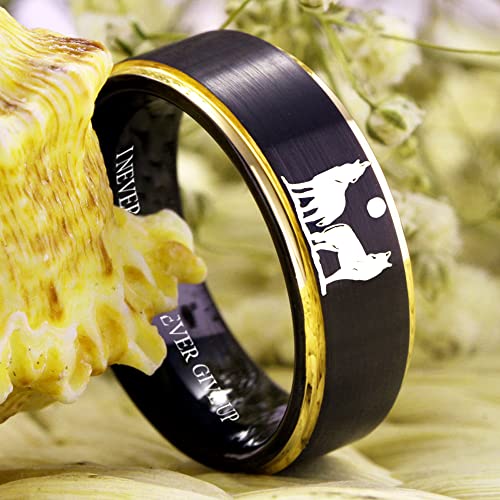 CLOUD DANCER Wolf Ring Howling Wolves Ring Moon Ring I Am Wolf Ring Wolf Design for Wedding Ring -Free Customized Engraving 7