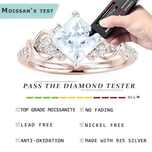 Moissanite Engagement Rings for Women, 1.4CT Princess Cut Moissanite Ring for Women 925 Sterling Silver Wedding Bands Promise Rings for Her Anniversary Wedding Ring Size 3-10 2