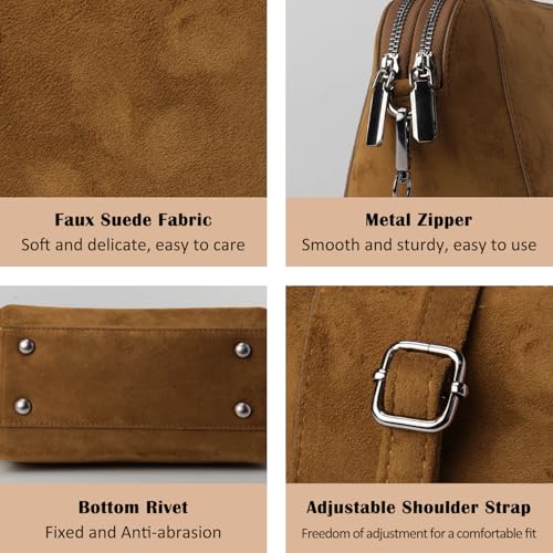 • Premium Fabric: This stylish crossbody bag for women is crafted from high-quality vegan suede fabric—soft,delicate texture, skin-friendly, and odor-free. Its rich color exudes luxury and sophistication, making this elegant suede bag the perfect accessory for casual outings. It effortlessly elevates any outfit with a touch of chic