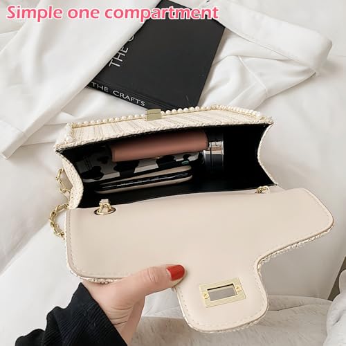Straw Crossbody Bag for Women, Cute Woven Shoulder Bag with Pearl Trim Small Cross Body Purse Handbag Spring Summer Trendy 4