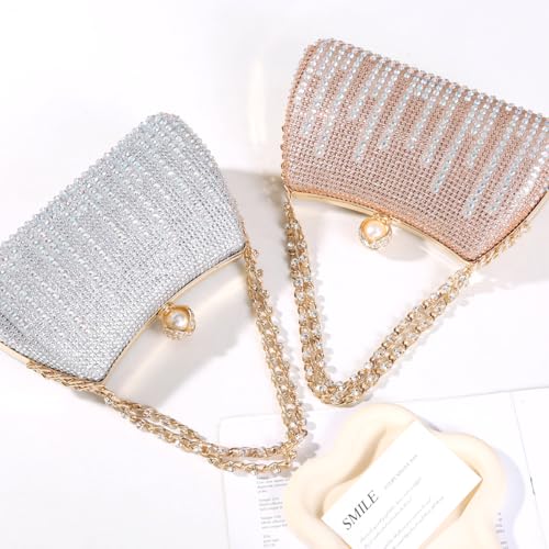 Dreubea Womens Fashion Rhinestone Evening Handbag with Chain Shiny Tote Clutch Bag 5