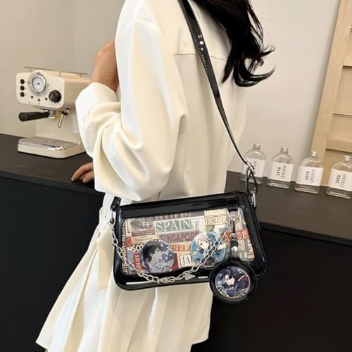 • Design: Gothic style ita bag with stars rivet studded decor. The cute purses with insert is easy to DIY your bag display window, the transparent window is perfect for pins, brooches, badges, buttons, dolls, stickers and more beautiful aesthetic items.