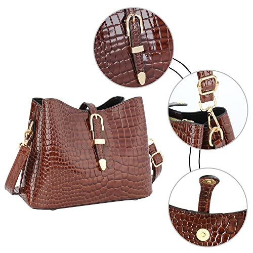 LABANCA Women Retro Alligator Bucket Bags Crocodile Pattern Designer Shoulder Bag Ladies PU Purse Crossbody Wallet Bag 4