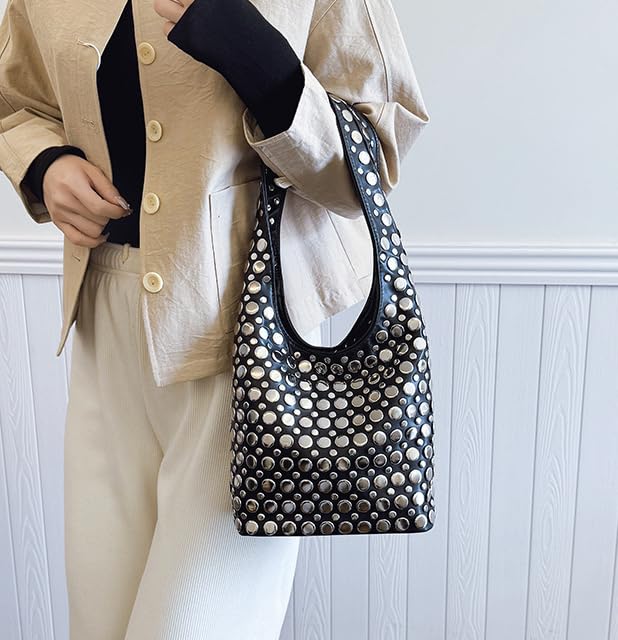 Studded Purse Shoulder Bag for Women Y2K Purse Underarm Handbag Dot Rivet Punk Tote Bag Small Shoulder Handbags Streetwear 2