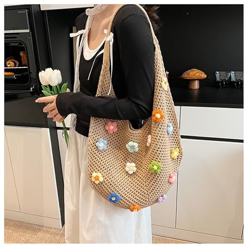 • 【Boho Style & Colored Flower】Boho Shoulder Bag with its natural and simple appearance and colorful flower decoration. The hollow exterior is embedded with colorful flower , adding color and vitality, making the bag more personalized and charming Great to be used as a shoulder bag for summer beach, resorts, travel or casual daily.