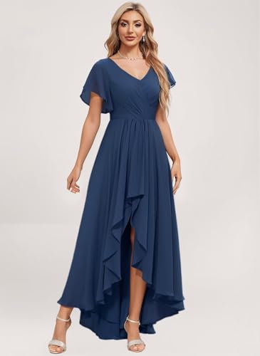 • Features: Short Sleeves Aline Bridesmaid Dresses for Teens 2025, V Neck Wedding Guest Dress, Plus Size Hi-Low Bridesmaid Dress, Empire Waist Formal Evening Dress for Women Formal Gowns, Long Chiffon Bridesmaid Dress