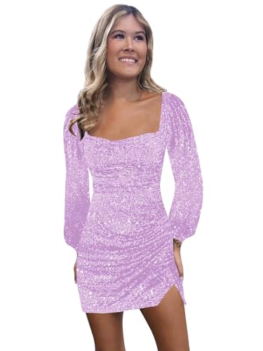 • Feature:Sparkly Sequin,Long Sleeve,Square Neck, Short Mini,Open Back,Ruched , Pleated ,Bodycon Tight,HOCO Dresses ,Teens Homecoming Dresses with Slit,Sexy Cocktail Party Gown for Women,The strap design at the back can have its size freely adjusted